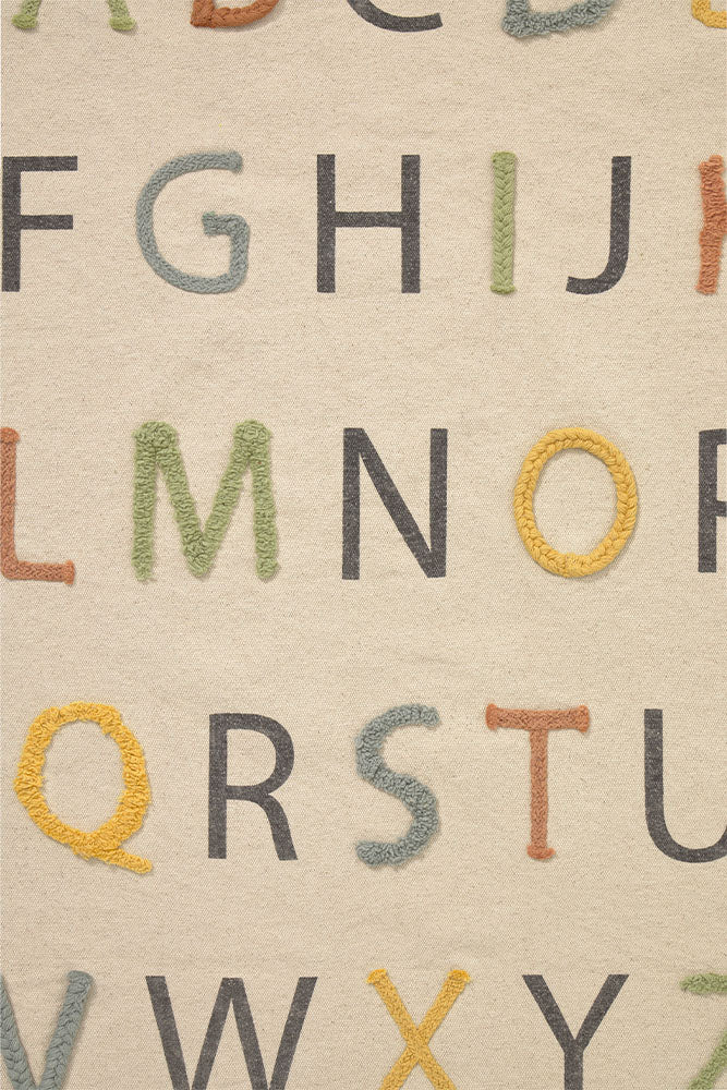 Ready to learn with the Wall Hanger ABC? Made from natural cotton canvas, this piece features each letter of the alphabet in a mix of printing, tufting, braids, and cords for a fun, textured design. A lasting decorative piece for nursery, a child's bedroom, or play room.