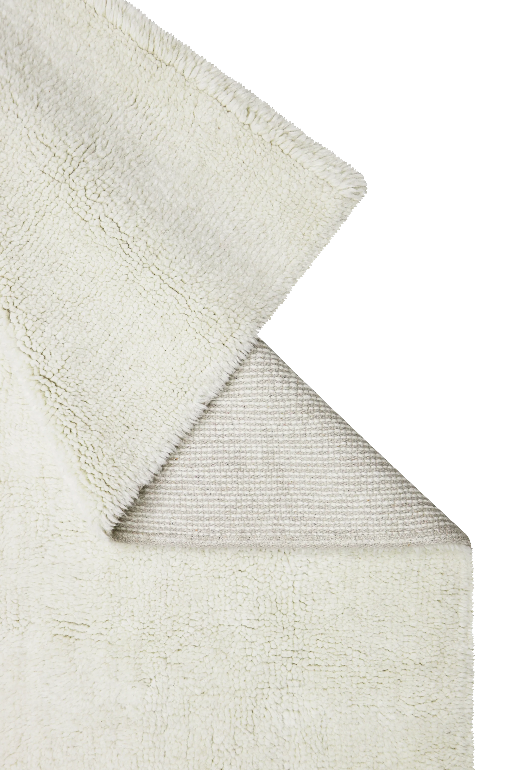 A timeless wool rug tufted in soft, extra-short wool pile, with a slightly longer pile finish at two of the edges. Handcrafted by artisans in undyed natural color and available in three sizes. Via a special non-toxic finishing process, this rug carries the WOOLABLE (R) patent, making it machine washable.