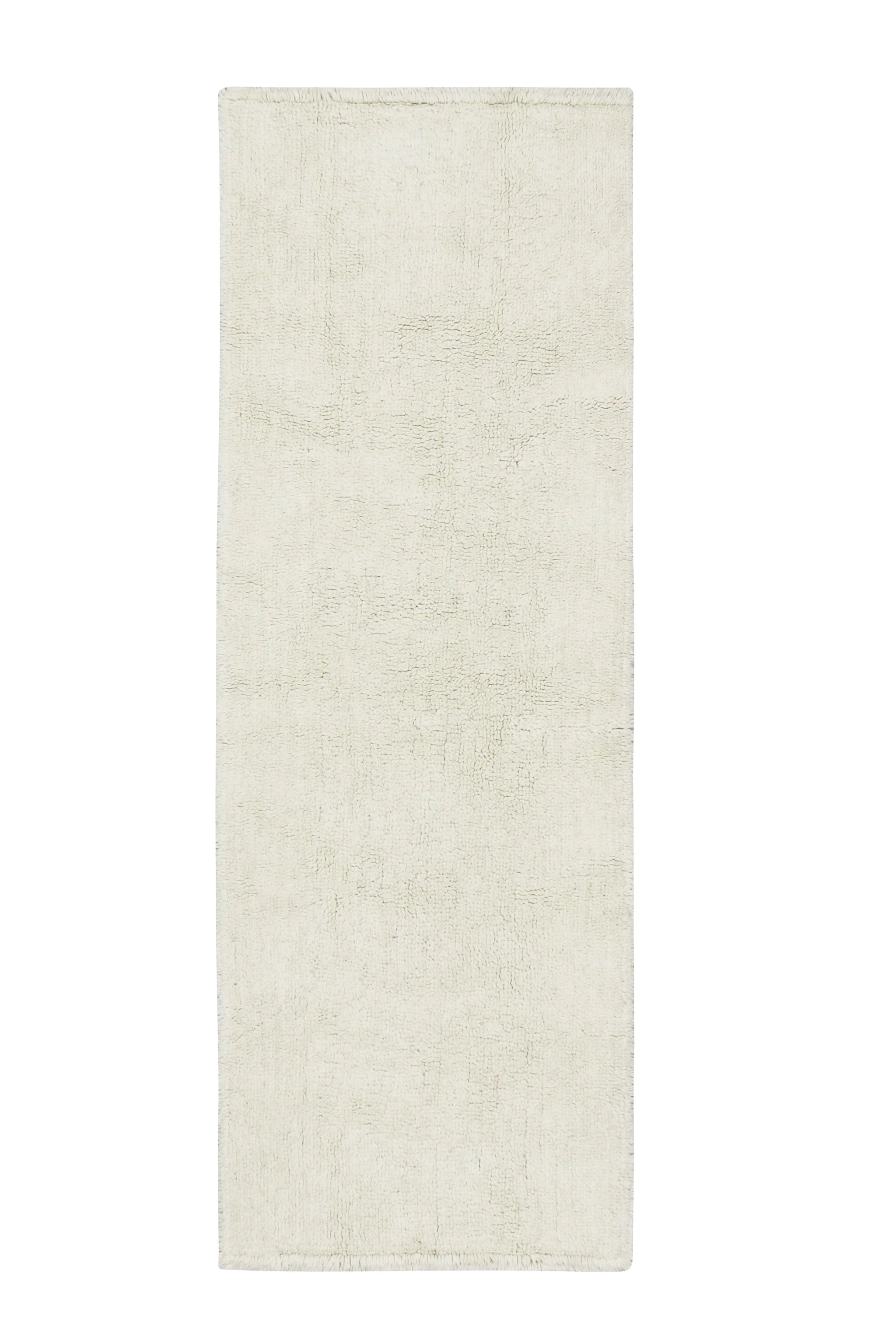 A timeless wool runner tufted in soft, extra-short wool pile, with a slightly longer pile finish at two of the edges. Handcrafted by artisans in undyed natural color and available in two sizes. Via a special non-toxic finishing process, this rug carries the WOOLABLE (R) patent, making it machine washable.