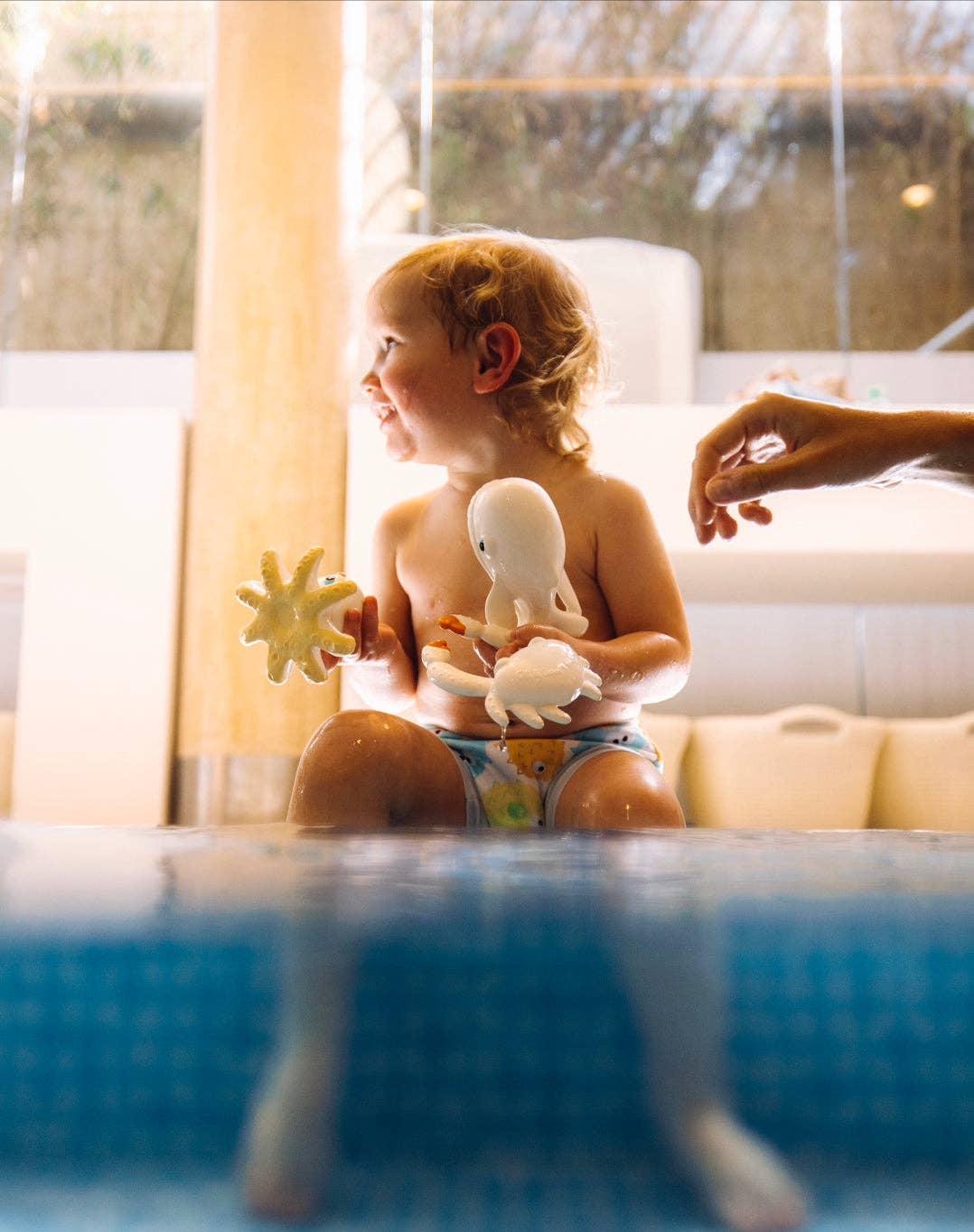 Age range: 0+ certified. Recommended for babies for teething, and older kids for bath time & role play. Soft, easy to grasp, and safe to chew.