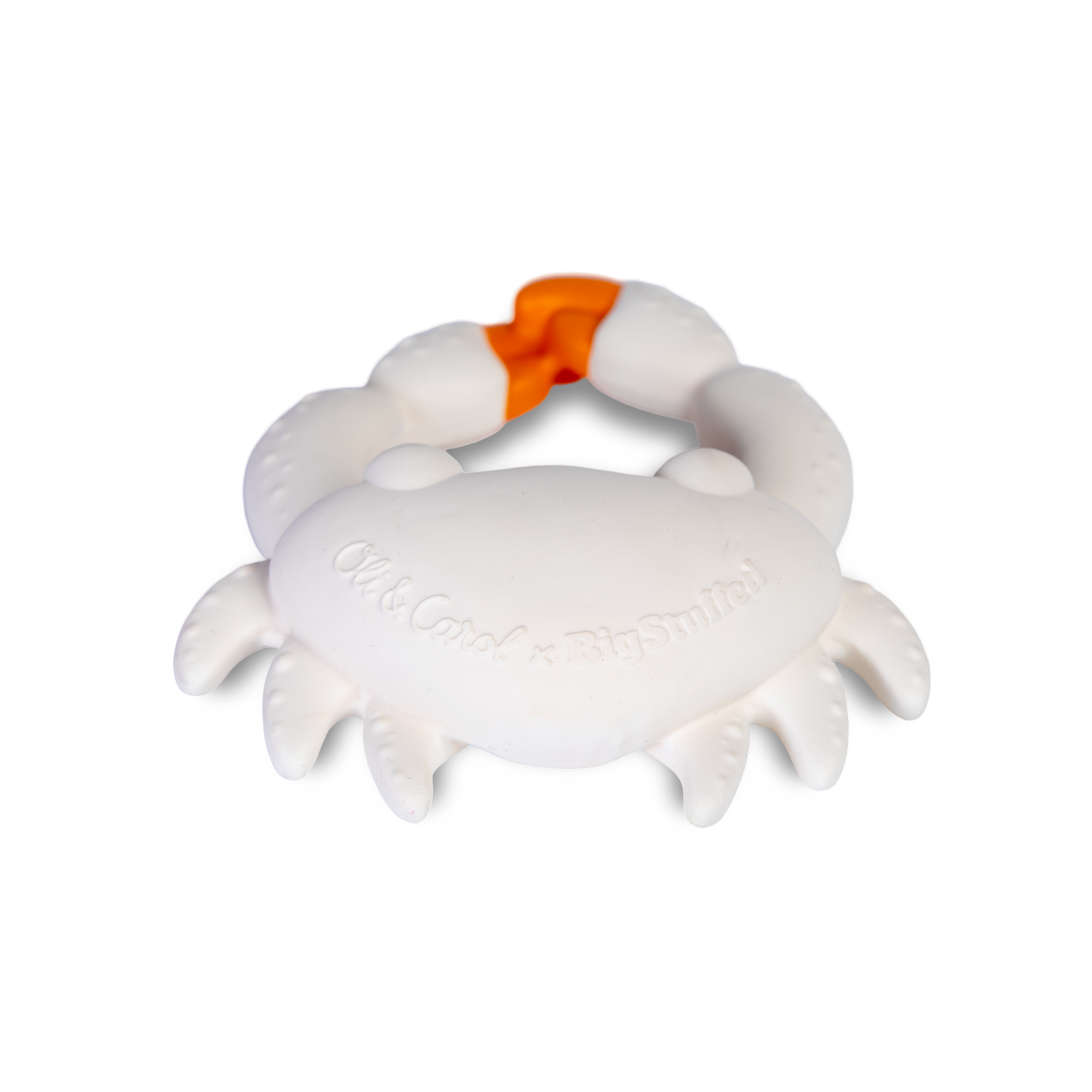 Meet Sharon the Crab! This natural rubber toy can be used for bath time, teething and sensory play. Sharon's pincers form a ring that's easy for little hands to grasp, hold, and chew. She is equally enjoyable as a bath toy for kids of all ages.